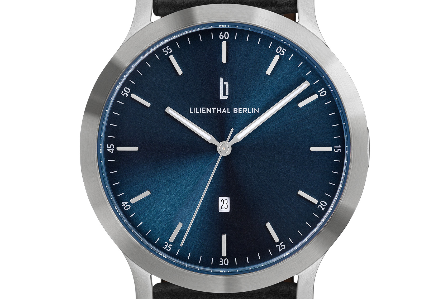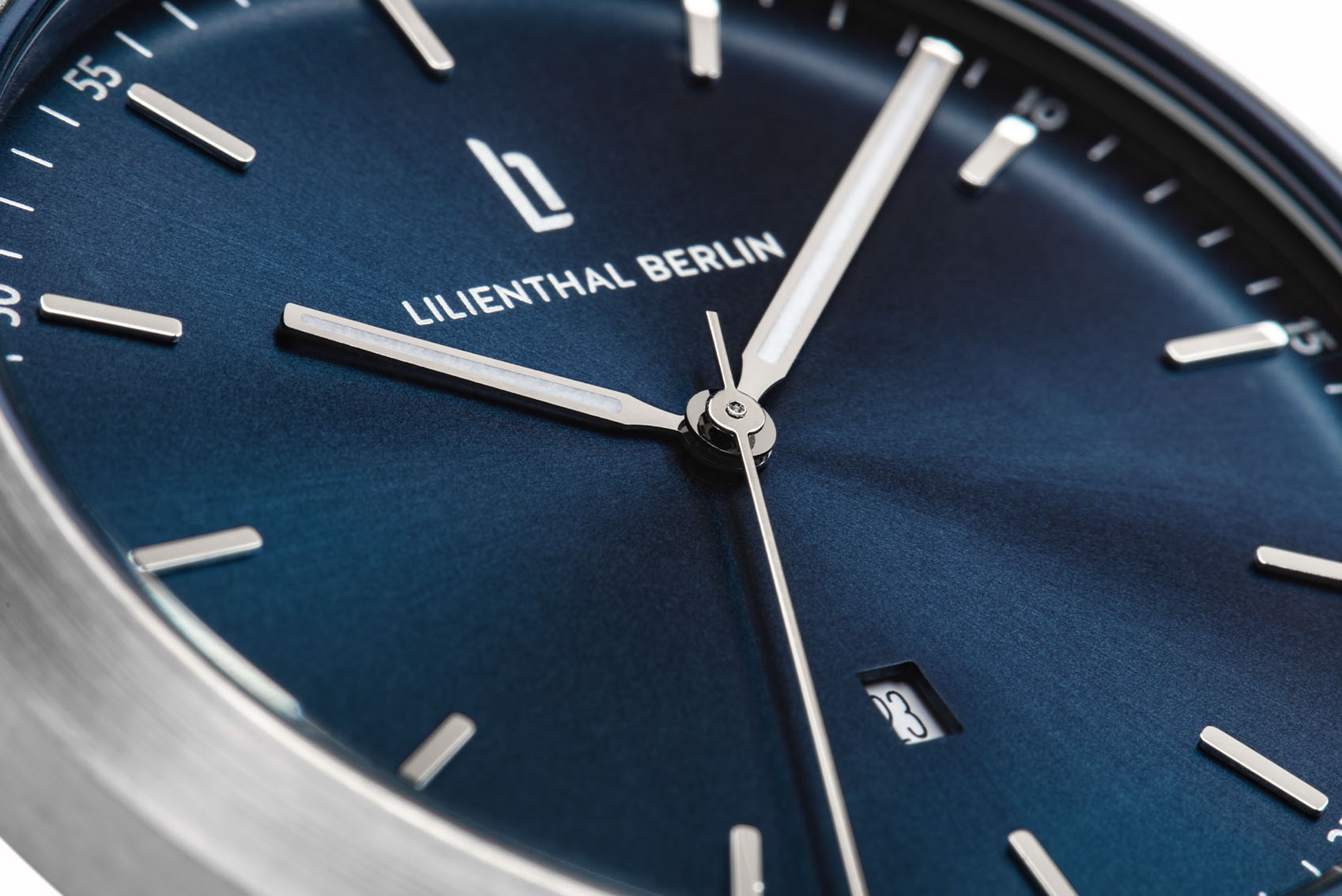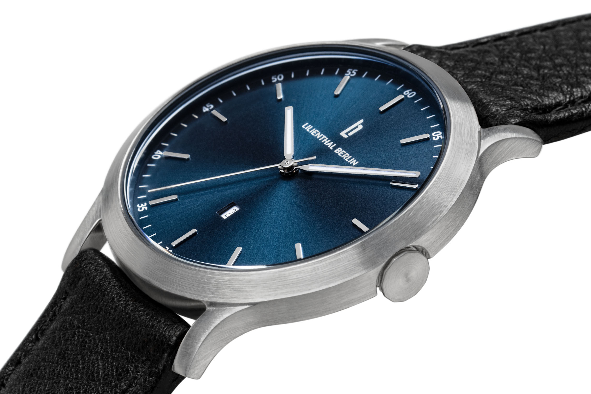 Dial with sun cut finish, hour markers, and a brushed stainless steel case – guaranteed to catch the eye.