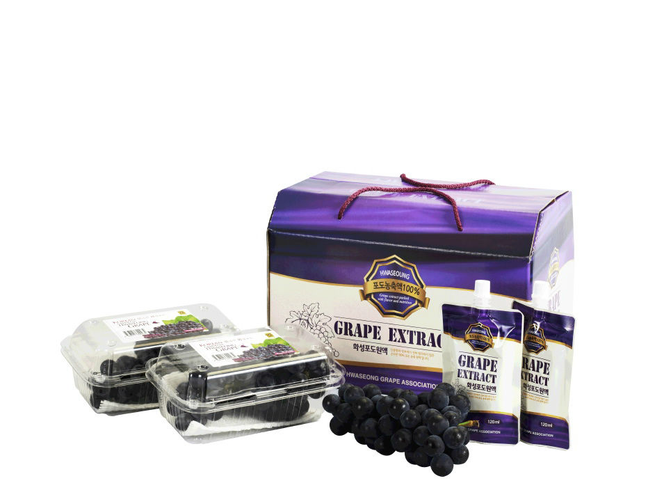 Hwaseong Grape Extract is made of 100% Hwseong grapes that earned Global GAP Certification. It is pure grape extract that includes no additives in it. One box is composed of thirty pouches of extract and each pouch contains 120ml. It is healthy drink that brings the flovor and scent of Cambell's early grapes. Also it is reliable to drink because it is made through a hygienic production process and packed in a pouch that does not caus ant endocrine disrupting chemicals.