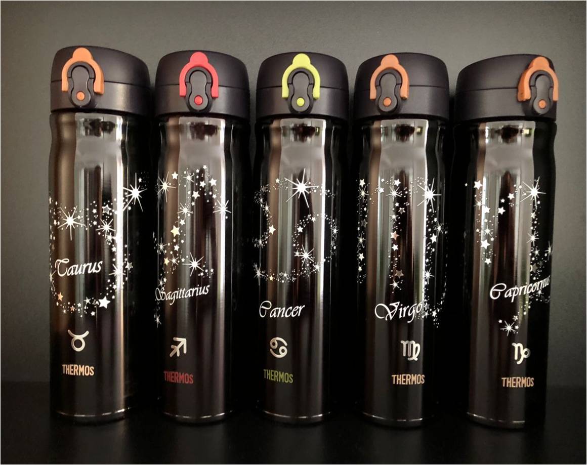 New pictograph lock. Stainless steel vacuum insulation keeps beverages hot or cold for hours