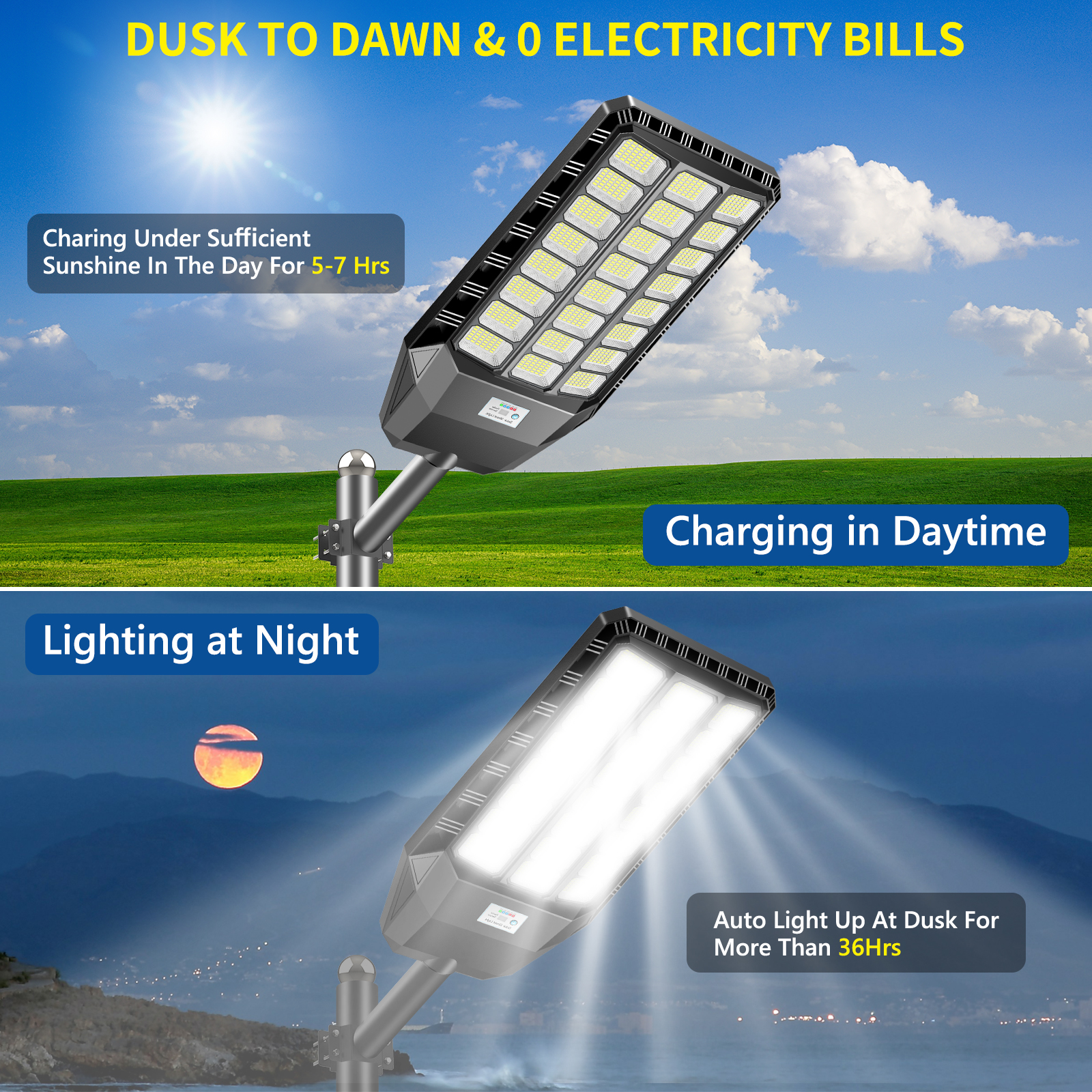 Long-Lasting Performance: Constructed with high-quality materials and advanced technology, this solar street light offers long-lasting performance and minimal maintenance, ensuring consistent operation over the years.