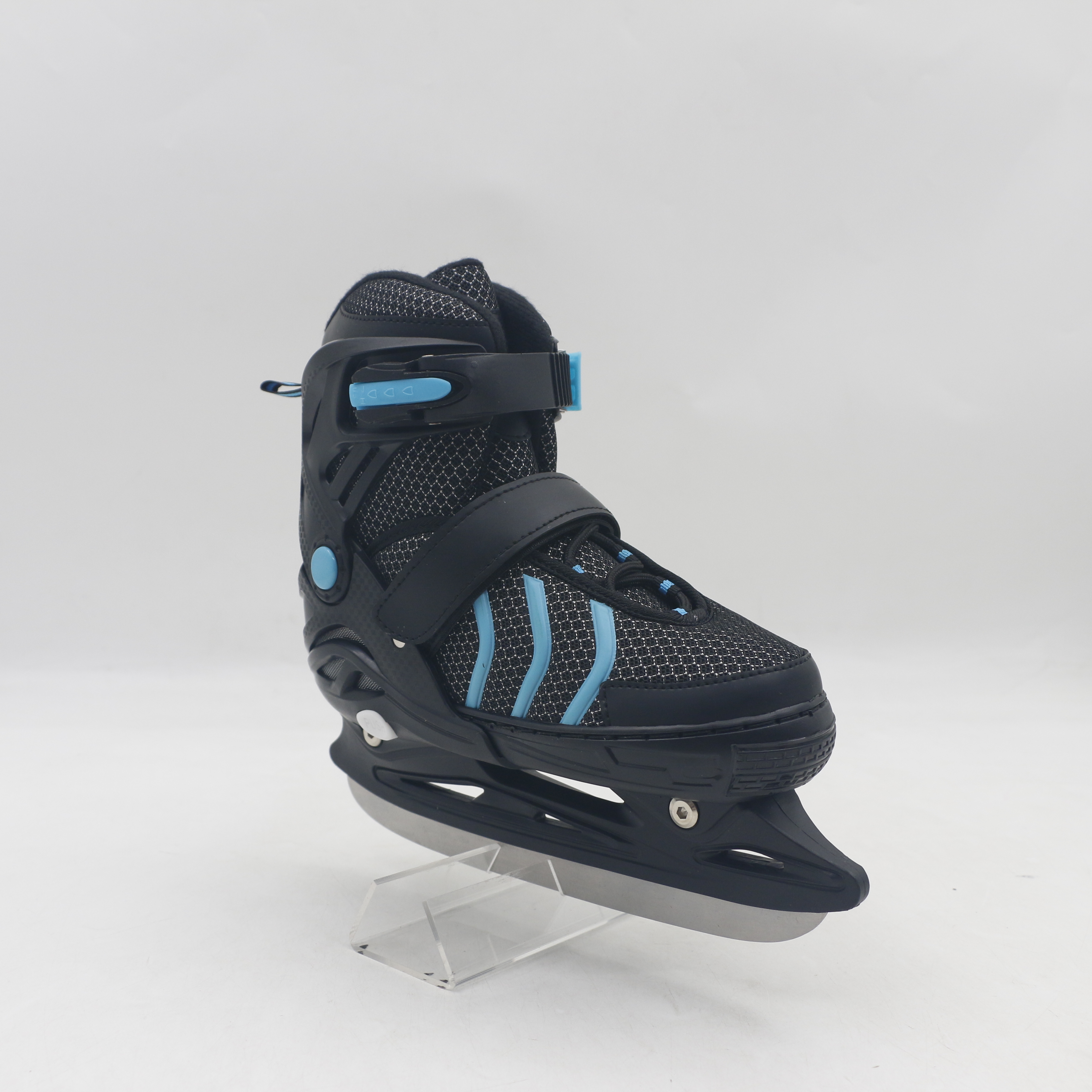 1) Material:PE shell and Comfortable sponge with high-grade leather                                                                                                                                                                                                                                                                                                                                                   2)Blade: 3 mm Stainless steel                                                                                                                                                                                                                                                                                                                                                                                                                   3)size:     S:31-34       M : 35-38     L : 39-42#