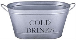 Galvanized ice bucket in oval shape, printed " COLD DRINKS".
