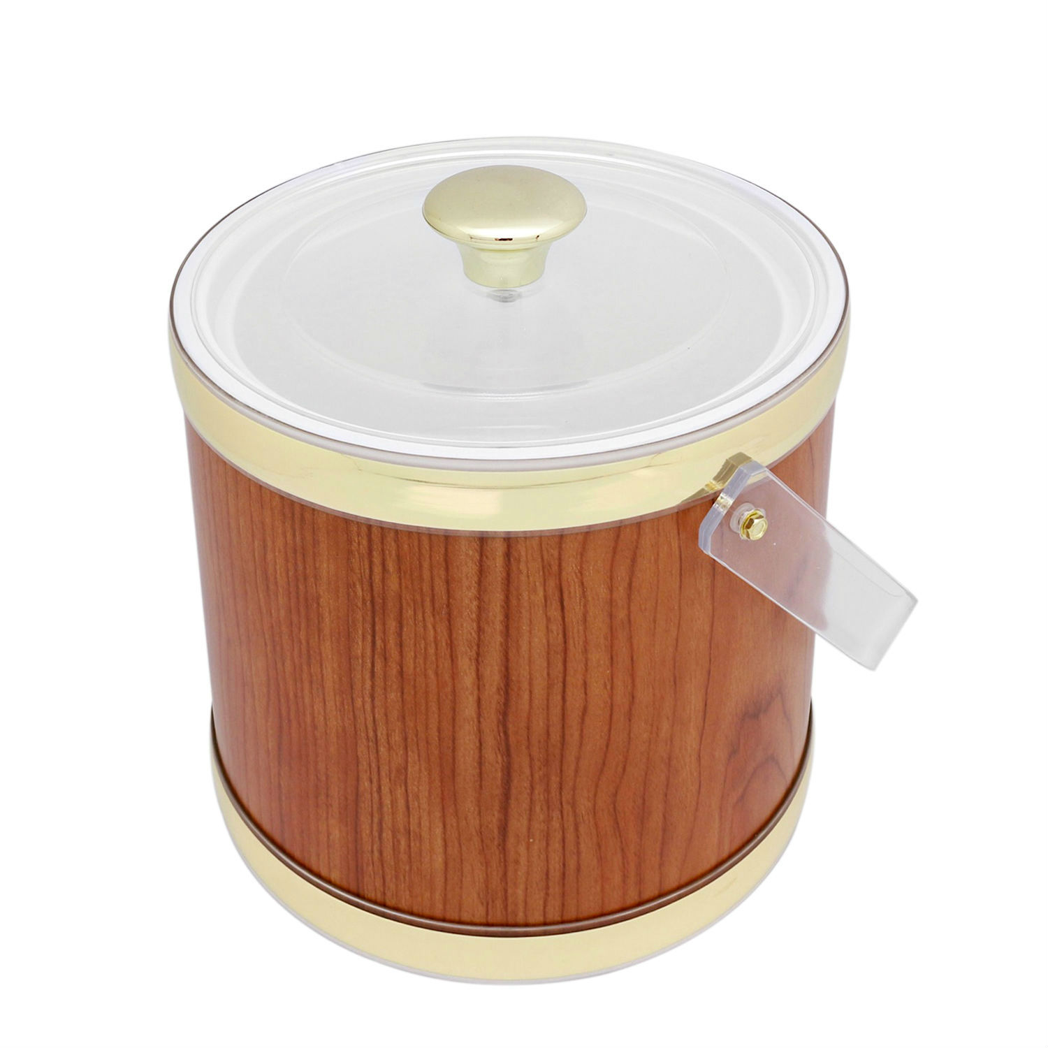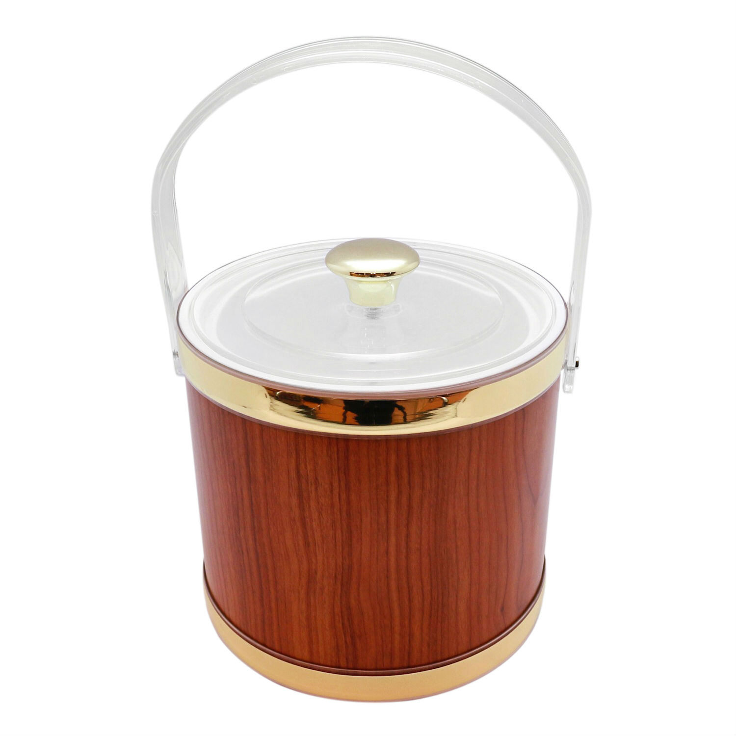 Teak bucket, 2 gold wide band top and bottom clean handle, large gold knok