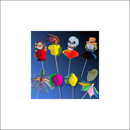 Santa claus pick, butterfly pick, halloween pick, Metallic foil palm tree pick, paper honeycomb, fruit pick, umbrella pick