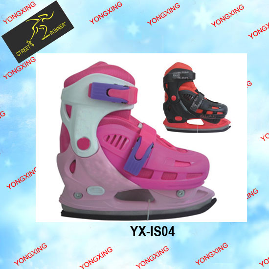 Featured here is a pair of ice skates with stylish boots and adjustable blades. The ice skates are designed with dual safety buckles for added safety. These stylish and functional ice skates provide endless skating fun for kids and adults.