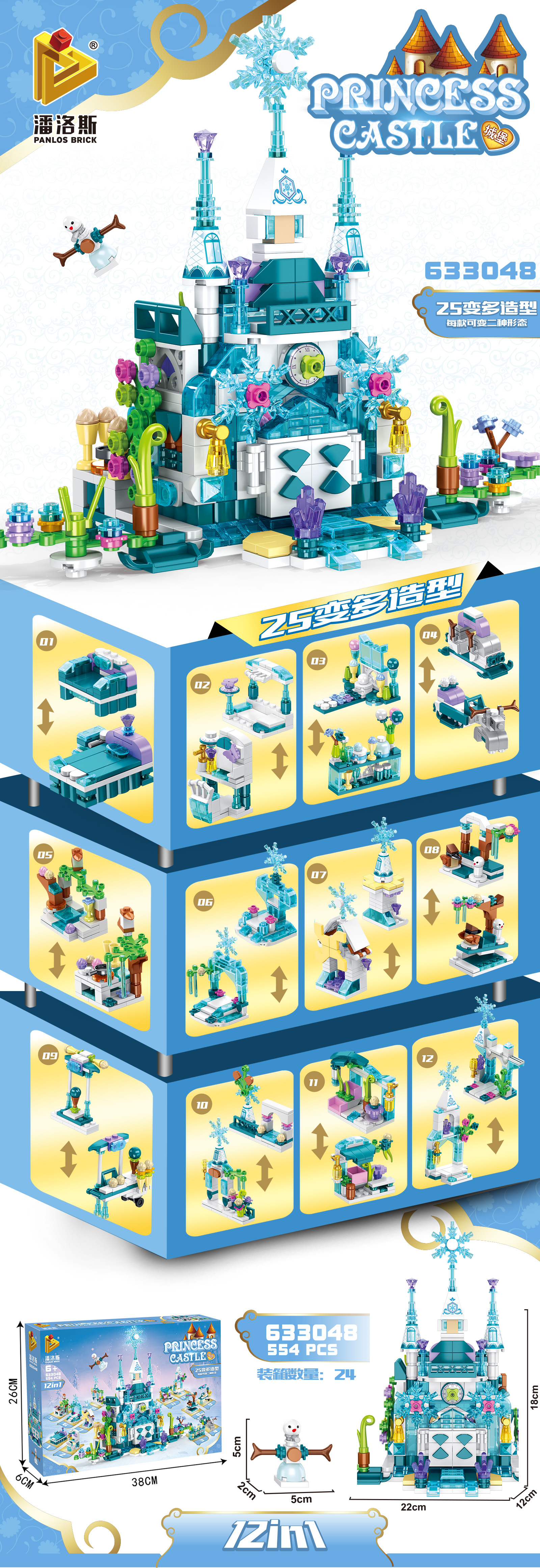 Castle:22*12*18cm; Snowman:5*2*5cm