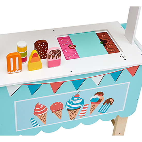 cart could move around in house, good for more than 2 kids play together. come up with 5 Popsicle and sliding door for ice cream