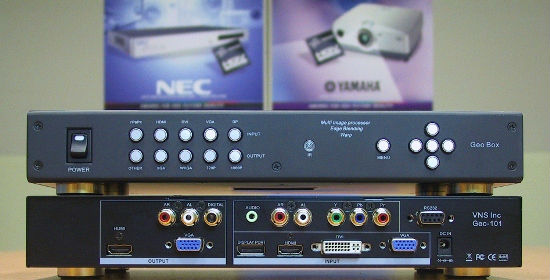 GeoBox is a standalone system to implement high end format conversion, video wall, sophisticated image warp & edge blending, passive 3D display and Geometry Adjustment, supporting up to 4k/2k UHD input and WUXGA (full HD) output. No PC system or special software tool is required.