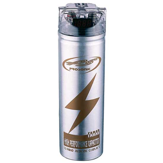 Showcased is an in-car capacitor with a robust metal housing to guard against corrosion. The high-quality material ensures high-performance with high reliability. This lightweight capacitor is a great accessory for car audio systems.