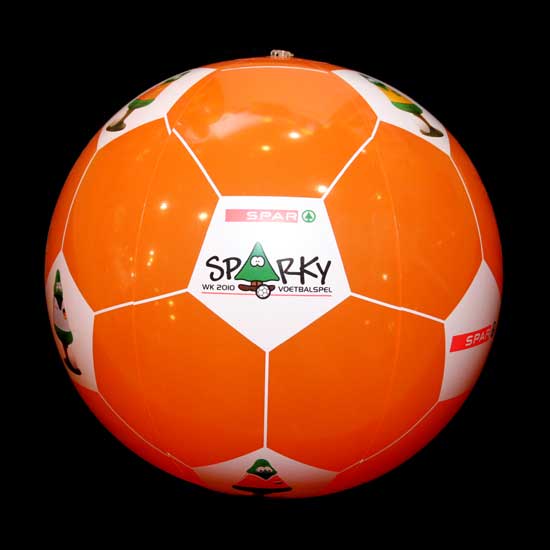 The inflatable beach ball comes in eye-catching orange color with contrasting linings.
