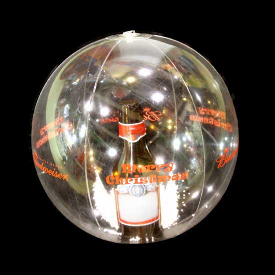 Showcased is an inflatable beach ball with Christmas greeting messages on the surface and foam balls inside. It features a high-quality PVC construction for excellent structural strength. This inflatable ball is suitable for play on the beach and along the poolside.