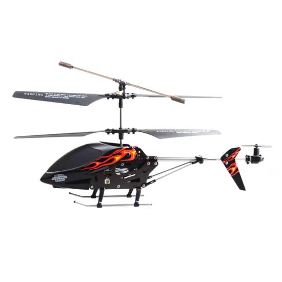 This infrared remote-controlled helicopter flaunts a sleek design with big rotors for an exquisite accent. The fierce flame prints jazz up the stylish black fuselage and tail fin. Indulge in the aviation fever with this handsome chopper.