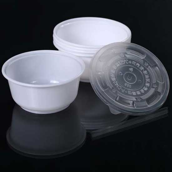 This injection molding lunch box comes in a round shape in clean white. It comes with a tight-fitting transparent lid for enhanced convenience. This disposable food box is ideal for restaurants and fast food shops.