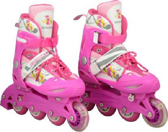 Inline skate, PVC/PU wheels,Bearing ABEC-7 semi-soft boots , PP frame, screw adjustment, PVC bag packing, 4color