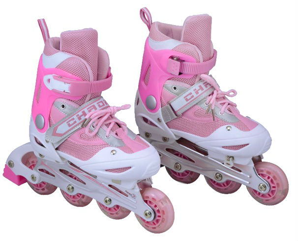 PVC/PU wheels,Bearing ABEC-7 semi-soft boots , PP frame, screw adjustment, PVC bag packing, 4color