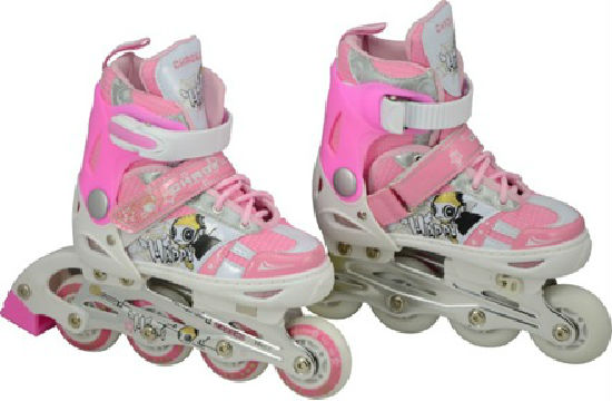 PVC/PU wheels,Bearing ABEC-7 semi-soft boots , PP frame, screw adjustment, PVC bag packing, 4color