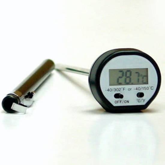 This thermometer instantly displays the temperature of food. The waterproof display area has a display with large digits. This product comes with a pocket clip that can be used as a handle extension.