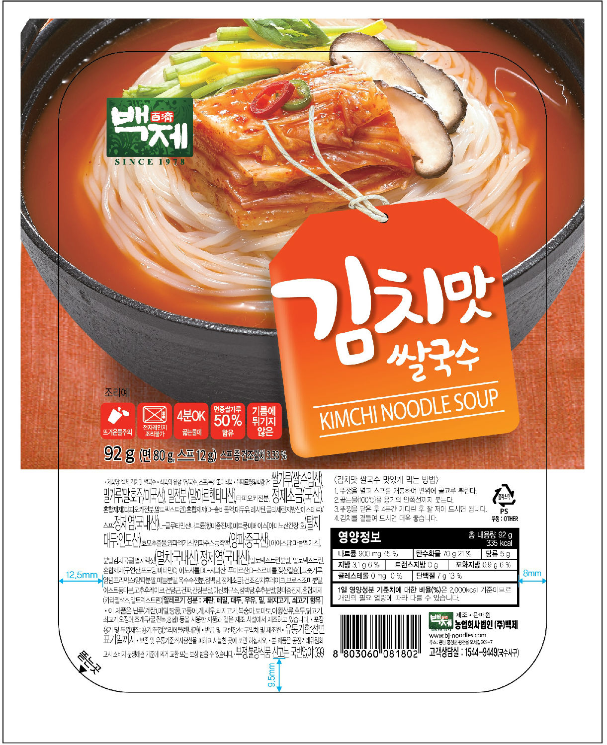 Instant Rice Noodle with Kimchi flavor (Noodle: 80 g/ Soup: 12 g)