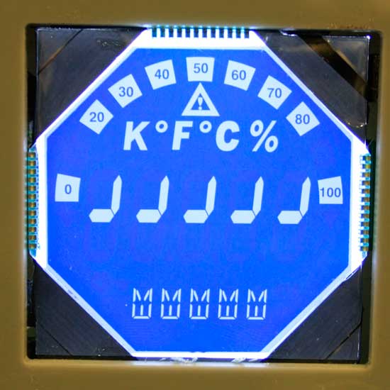 Highlighted is an instrument display equipped with a LCD monitor. The display comes in a hexagonal shape, large enough to show readings clearly. The display can be easily applied in various kinds of professional instruments.