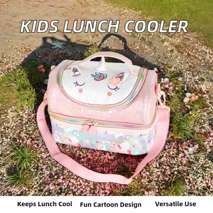 Aimazing's Kids Lunch Cooler is immensely popular among children, flaunting an engaging and entertaining cartoon design. It transcends the role of a mere lunch bag, evolving into a cherished companion that kids are eager to carry around. This distinctive design injects excitement into mealtime, inspiring children to look forward to their lunch breaks. Whether it's for school, a picnic, or a day outdoors, its visually appealing design catches the eye, adding a dash of charm to their daily lives. Ideal for kids using it as a school lunch bag or during various outings, it stands out among lunch bags for school kids.
