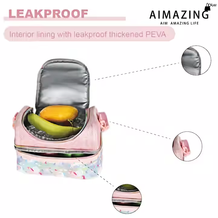 Safe and Hygienic Interior: The interior is lined with non-toxic, food-safe PEVT material. Additionally, in certain models, the leakproof thickened PEVA lining prevents any accidental leaks from creating a mess inside the bag. This keeps the bag clean and hygienic, ensuring that your child's food is stored in a safe environment. Whether used as a kids lunch box bag or a regular kids lunch bag, it prioritizes safety.