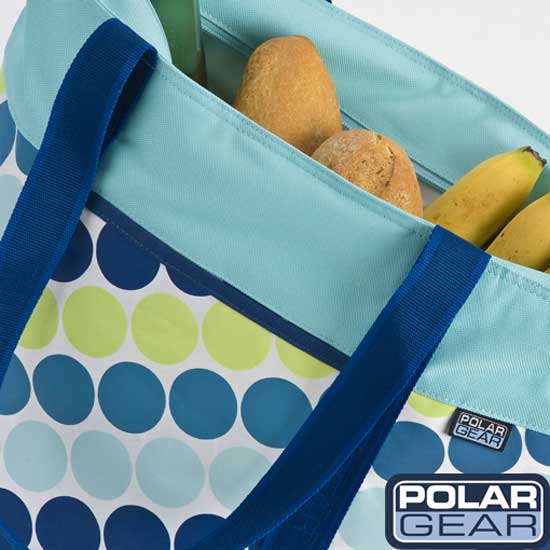 This lunch bag features an insulating structure to keep food cool and fresh. The cooler is in a tote bag design for easy carrying for a nice picnic. The blue dotted patterns make it an eye-catching bag for ladies.