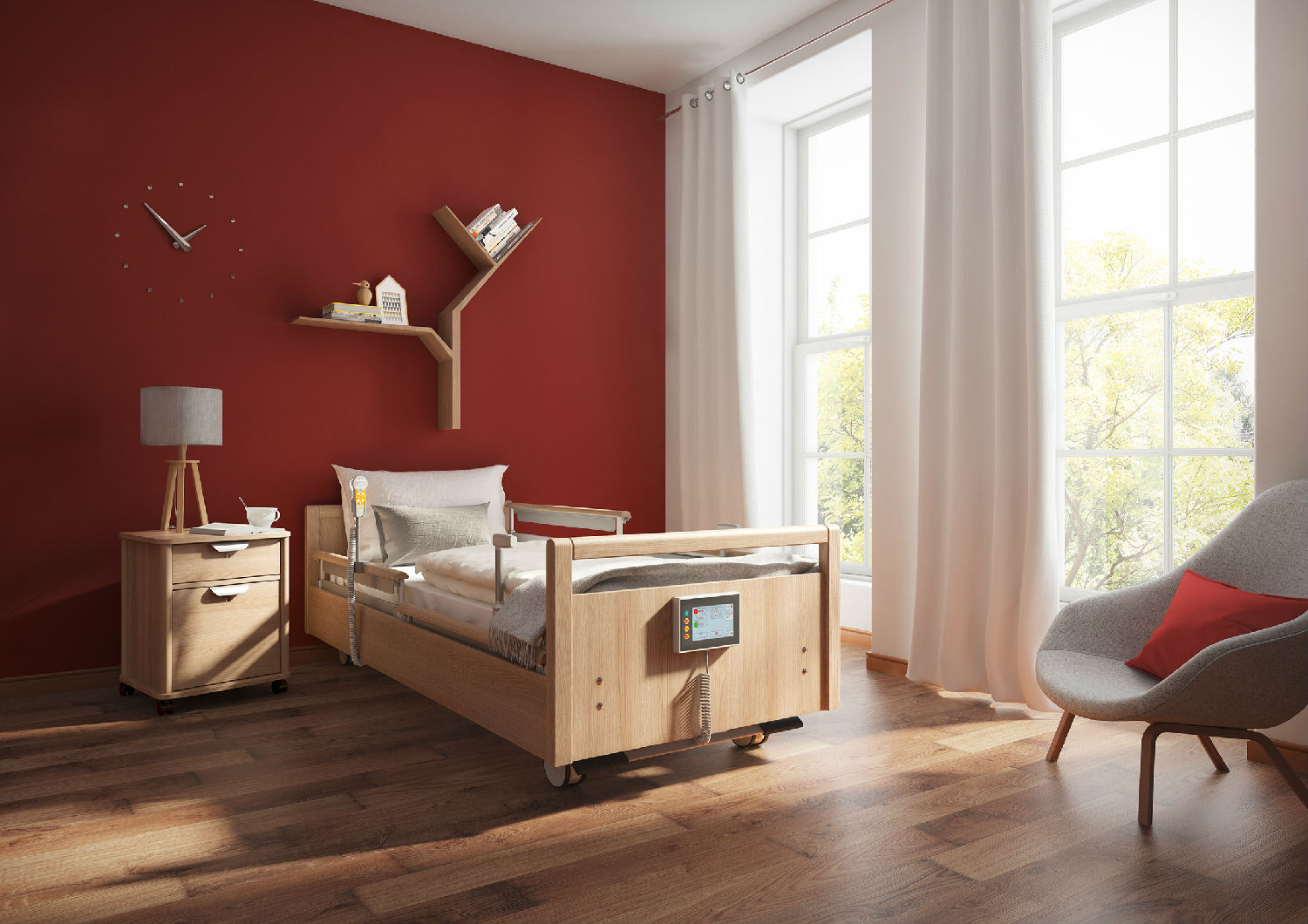 Low height nursing bed with intelligent, weight scale, safety monitor, bed exist alarm