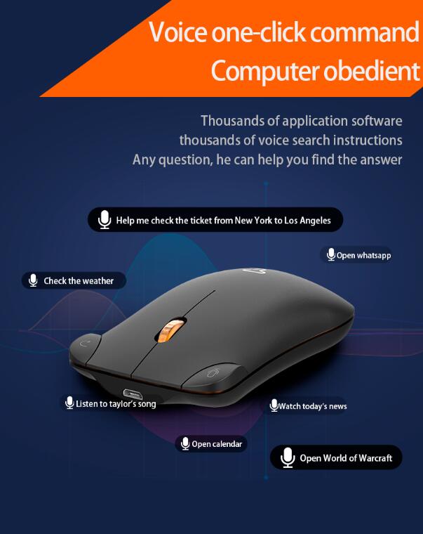 In order to help users achieve a better human-computer interaction experience and completely liberate both hands from typing, this mouse integrates AI technologies such as speech recognition technology and voice commands to become a smart mouse that can listen, speak and think. Pleasant and efficient office and leisure. It can type 400 words in one minute, the recognition accuracy is over 98%, and it supports more than 30 international languages such as English.