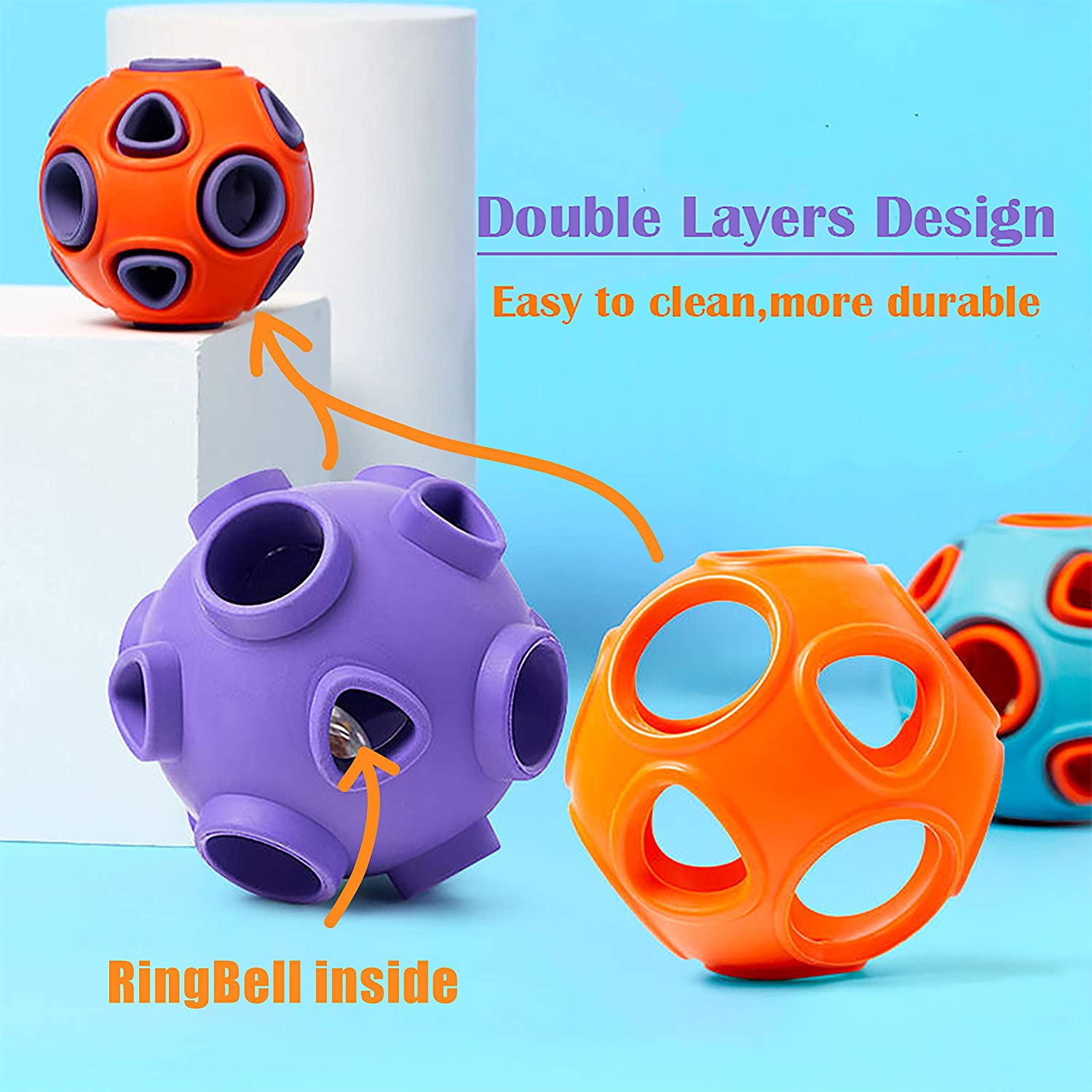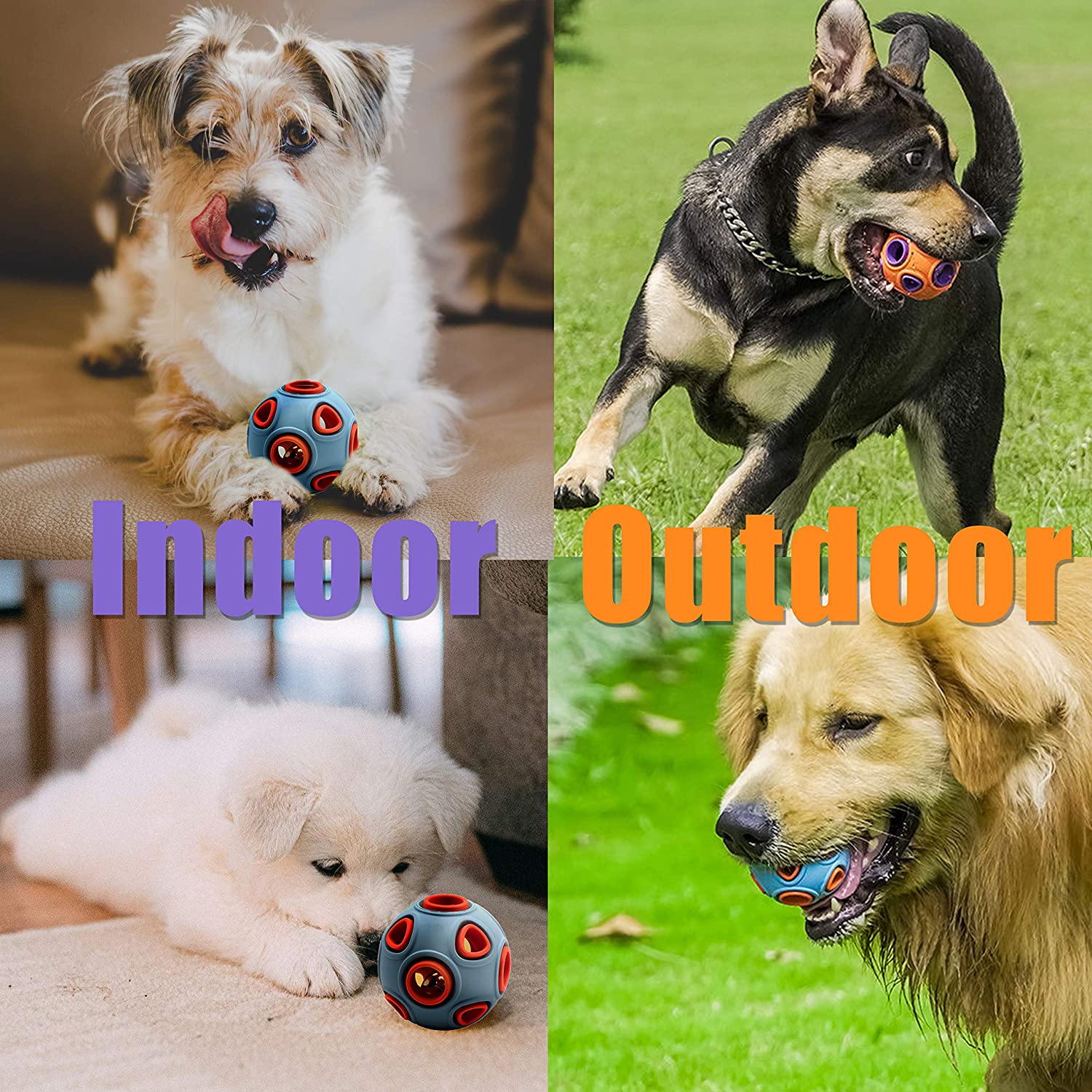 Interactive Dog Toys Ball with Bells,Durable Dog Chew Toys Balls for Small Medium Large Dogs Rubber Toys