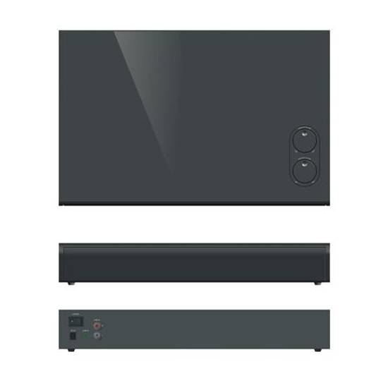 The integrated music bar includes 3.5mm RCA JACK Aux input. It is packaged with gift box and outer carton. It operates with full function IR remote control.