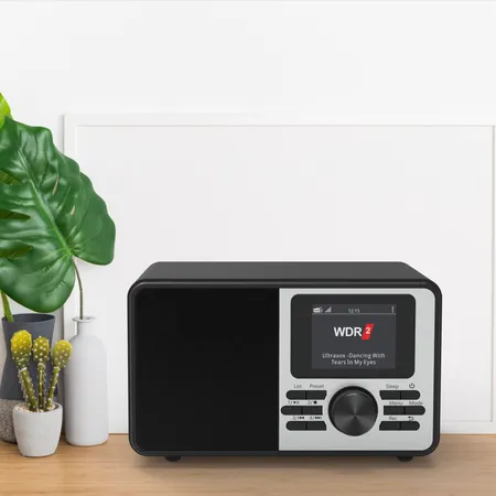 This NICET mono table mains radio receives digital DAB+, analogue FM as well as over 70,000 internet web radio tations & 70,000 podcasts. Although small-sized, it creates a solid sound experience thanks to the full range speaker featuring 10W output power, whose properties may be adjusted to individual preferences via equalizer model. It's UPnP and DLNA compliant and comes with a versatile USB media mode, supporting playback of different types of data as well as a state-of-the-art record mode. Many user-friendly features, such as alarm clock mode, sleep timer, multiligual menu, smartphone APP operation, and favorite keys top off the list of its features make it an outstanding and very veratile radio.