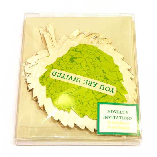 The invitation card comes in a special leaf shape. It features leaf green colors and an invitation message. The card offers a brand-new way to invite your friends.