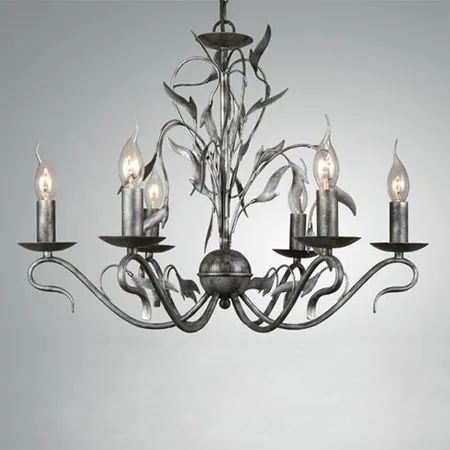 Featured is a five-bulb chandelier in a fancy design. It features an iron construction in a modern swirl appearance for added style. This lamp is sure to add a splash of color to your home decor.
