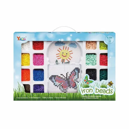 Details per unit: 6000PCS iron bead set +2pcs pegboard +4 pcs patterns+ accessories Packaging: window box, Size of box: 43.5X30X4.5cm, Size of outer carton: 64.5x46x63cm, Qty/Ctn:24pcs/ctn, 2 inner/ctn, cbm/cuft:0.19/6.6, G.W.: 10 kgs, N.W.: 9 kgs