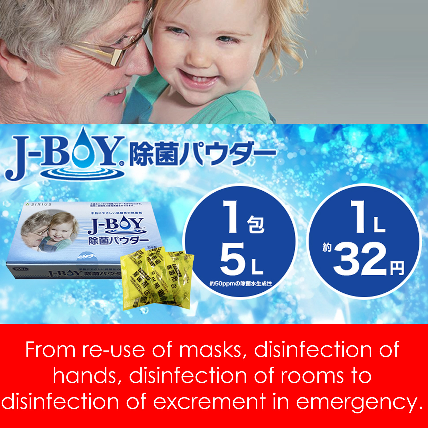 Put disinfecting water made with J-BOY disinfecting powder into a spray bottle and spray it to the place where you are worried for disinfection and disinfection.