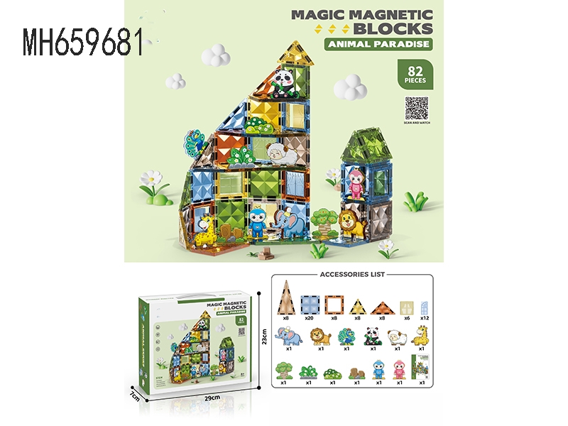 JADE DIAMOND MAGNETIC BLOCKS ANIMAL PARADISE 82PCS