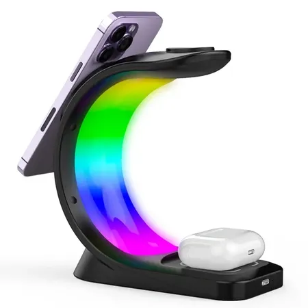 JEDI Phone Bracket 3 in 1 Wireless Charger Magnetic Charging Station With 6 Running LED RGB Light Lamp