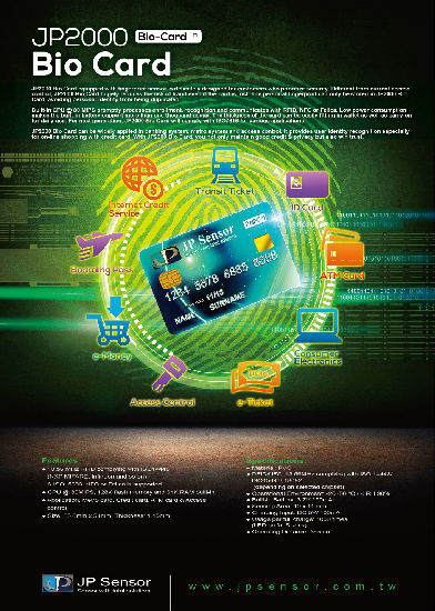 JP2000 Bio Card can be widely applied in banking system, metro system and access control. It provides user identity recognition especially for on-line shopping with credit card. With JP2000 Bio Card, you not only establish good credit but also win trust.