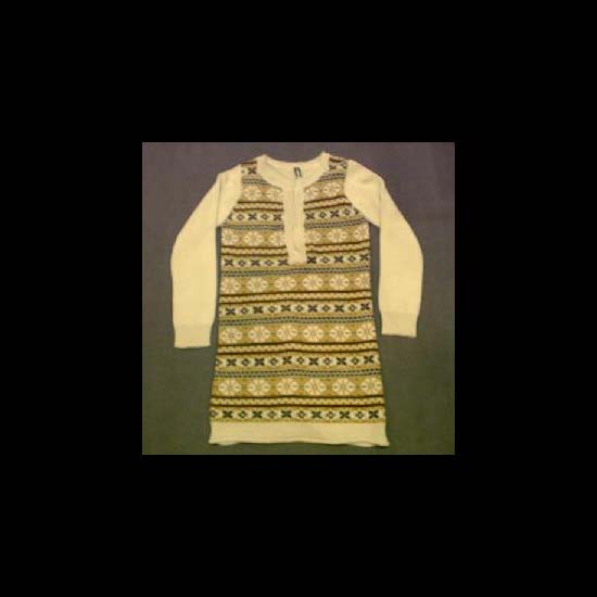 This fancy jacquard blouse is made of 60% wool 40% alpaca.