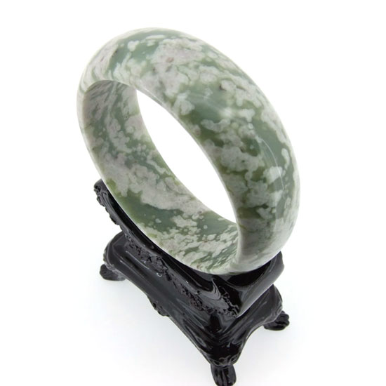 This exquisite bracelet is made of highly polished green jade with sparkle patterns. The genuine jade bracelet will bring you good fortune, prosperity, happiness and health. It makes a precious gift for your friends and family.