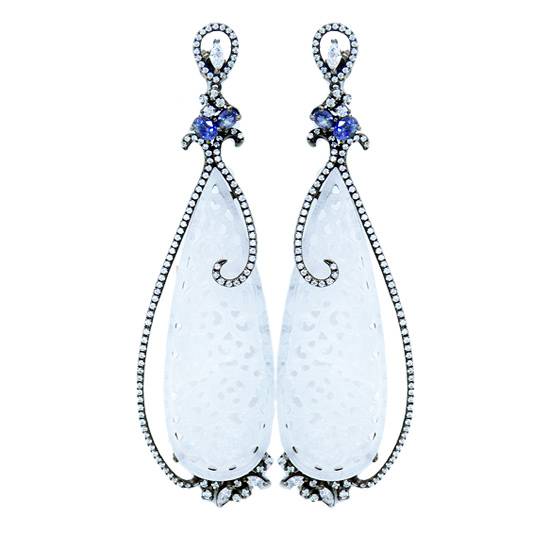 The featured item is a pair of earrings from a range named "Ethereal Dreams". The drop earrings consisted of a piece of delicately craved ice jade in pear shape.