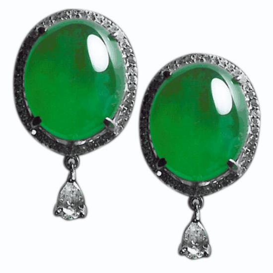 Featured is a pair of earrings made from diamond and jade. The fine polishing offers timeless beauty. This pair of jade earrings is a great addition to your jewelry collection.