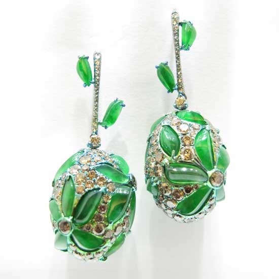 These exquisite oval-shape earrings come in a drop design. They are accented by jades and brown diamonds for a glamorous touch. The earrings are great accessories to complement your outfits.