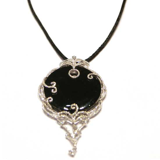 Available here is a jade pendant with thin and artistic motif settings to add a fashionable accent. The black jade is finely cut and polished to boost elegance. Accentuate your party look stylishly with this pricey jade pendant.