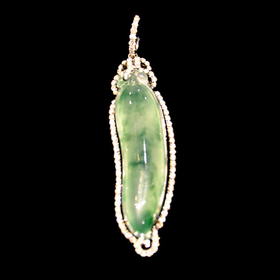 This dainty pendant is well accented with a bean-like jade. Surrounded with well-cut diamonds, this jade pendant showcases added brilliance. This pretty jade pendant is ideal for adding an elegant accent to your look.