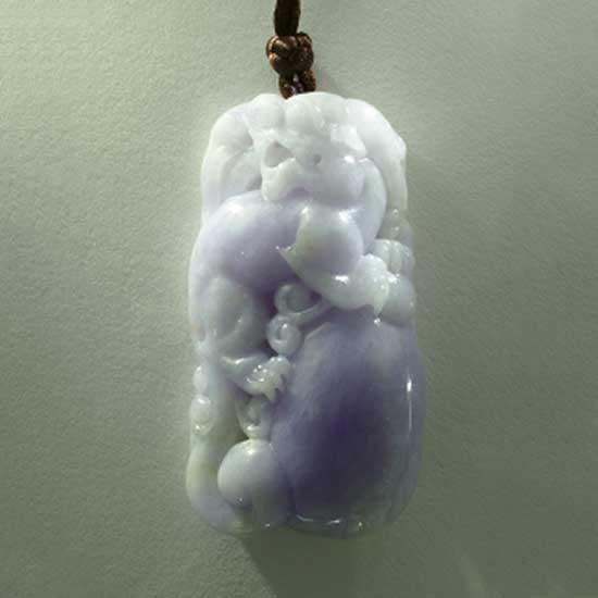 This alluring rectangular pendant is made of purple jade with a glossy finish. It stands out from others with its vivid and detailed carvings. This fascinating jade pendant is a great addition to your jewelry box.
