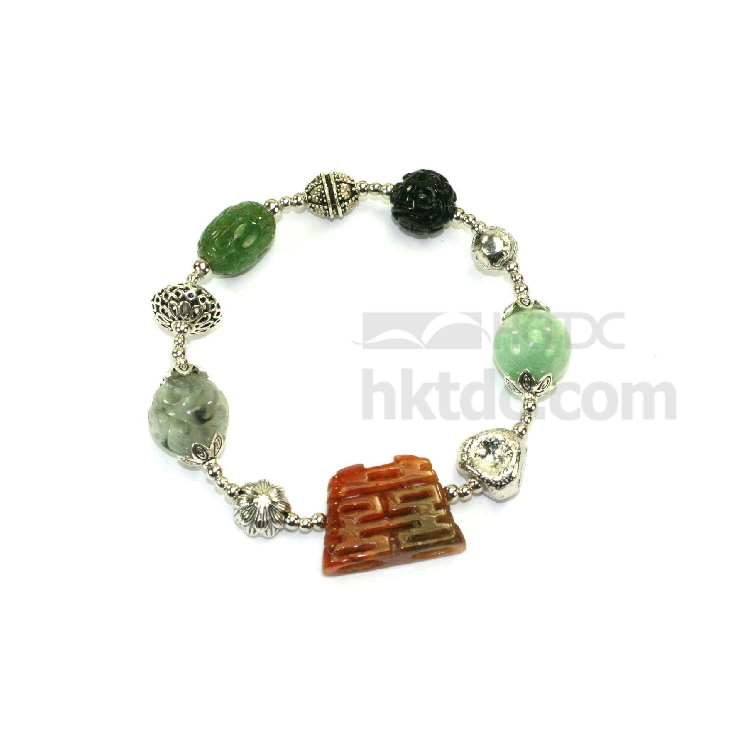 Jadeite Grade A Sterling Silver Stretchable Bracelet