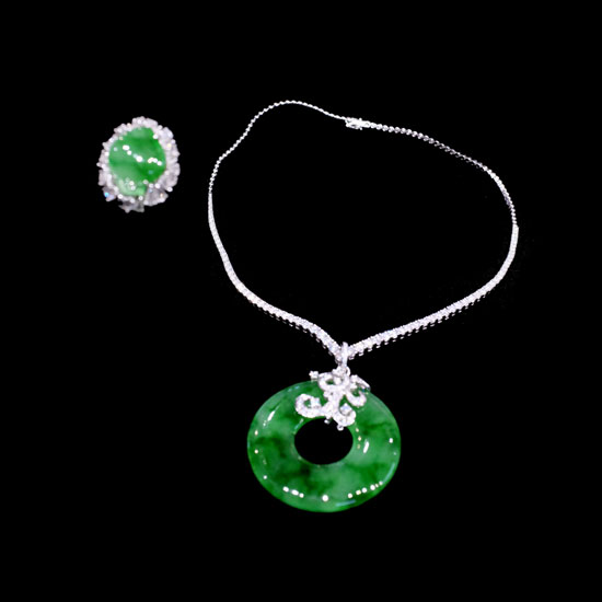 This is a series of jewelry that comes with a bangle, a necklace and a ring. Each piece boasts a dainty and elegant design with a Burma jade embellishment. This series of jewelry is a great addition to your fine jewelry collection.