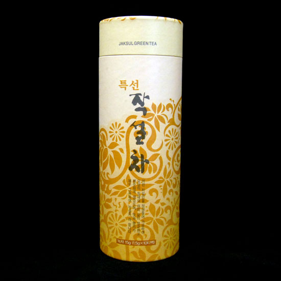 Displayed is a pack of green tea bags with a pyramid design for each. The pyramid design allows more space for the tea to fully diffuse in the water. The green tea is made from all new leaves from the tea bush.