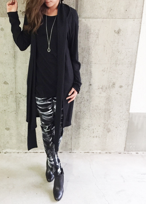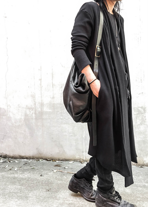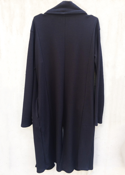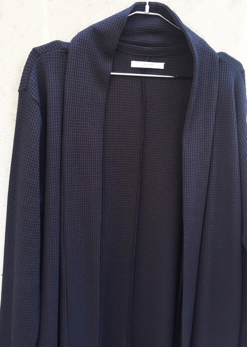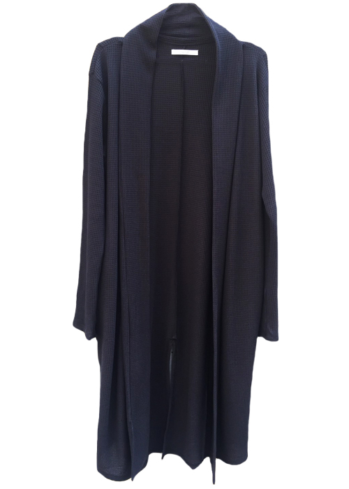 Oversized long cardigan constructed from soft light cotton, washi (Japanese paper), and polyester blended waffle jersey fabric.